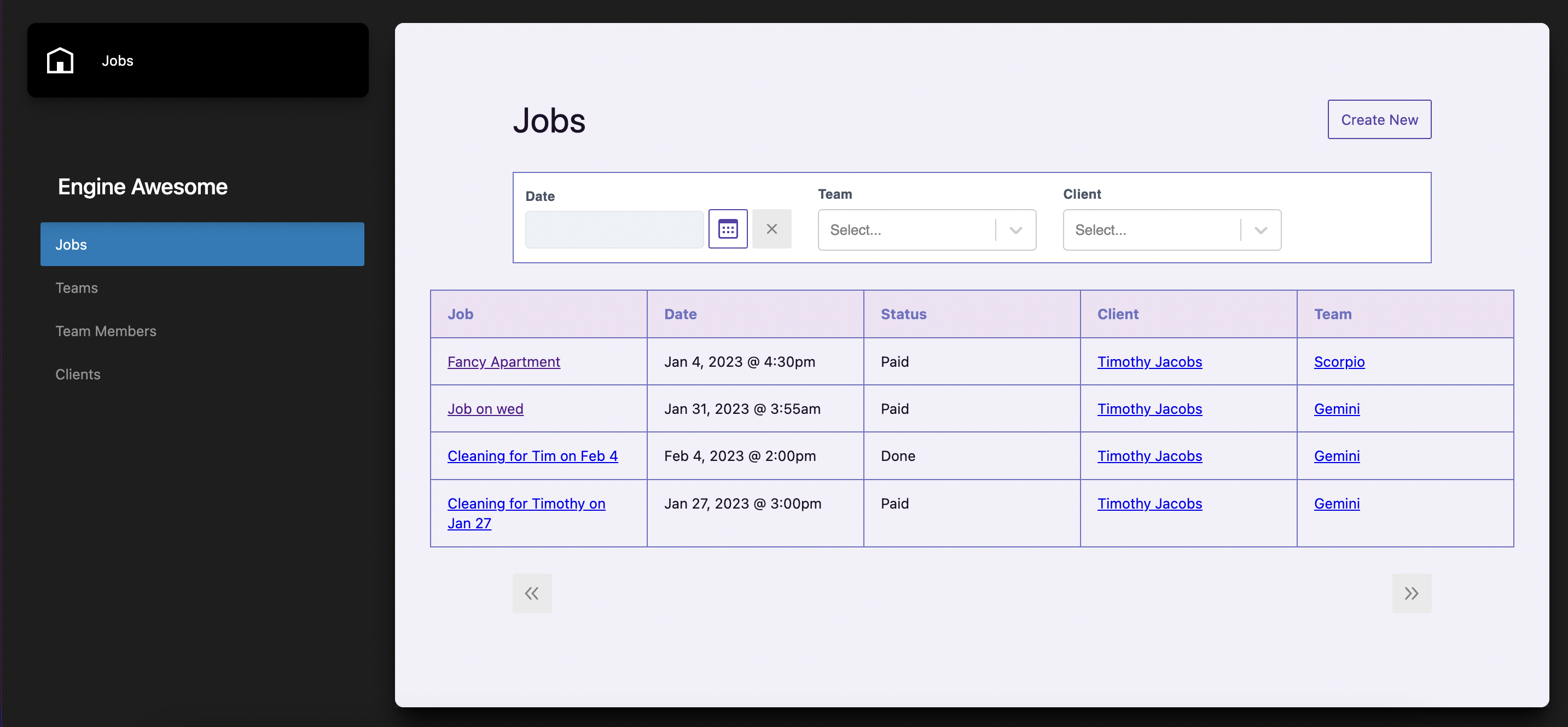 Engine Awesome is a no-code application builder where users can create object types (similar to custom post types) to store and organize their data. Here is an example from the dashboard of a demo application for cleaning jobs.