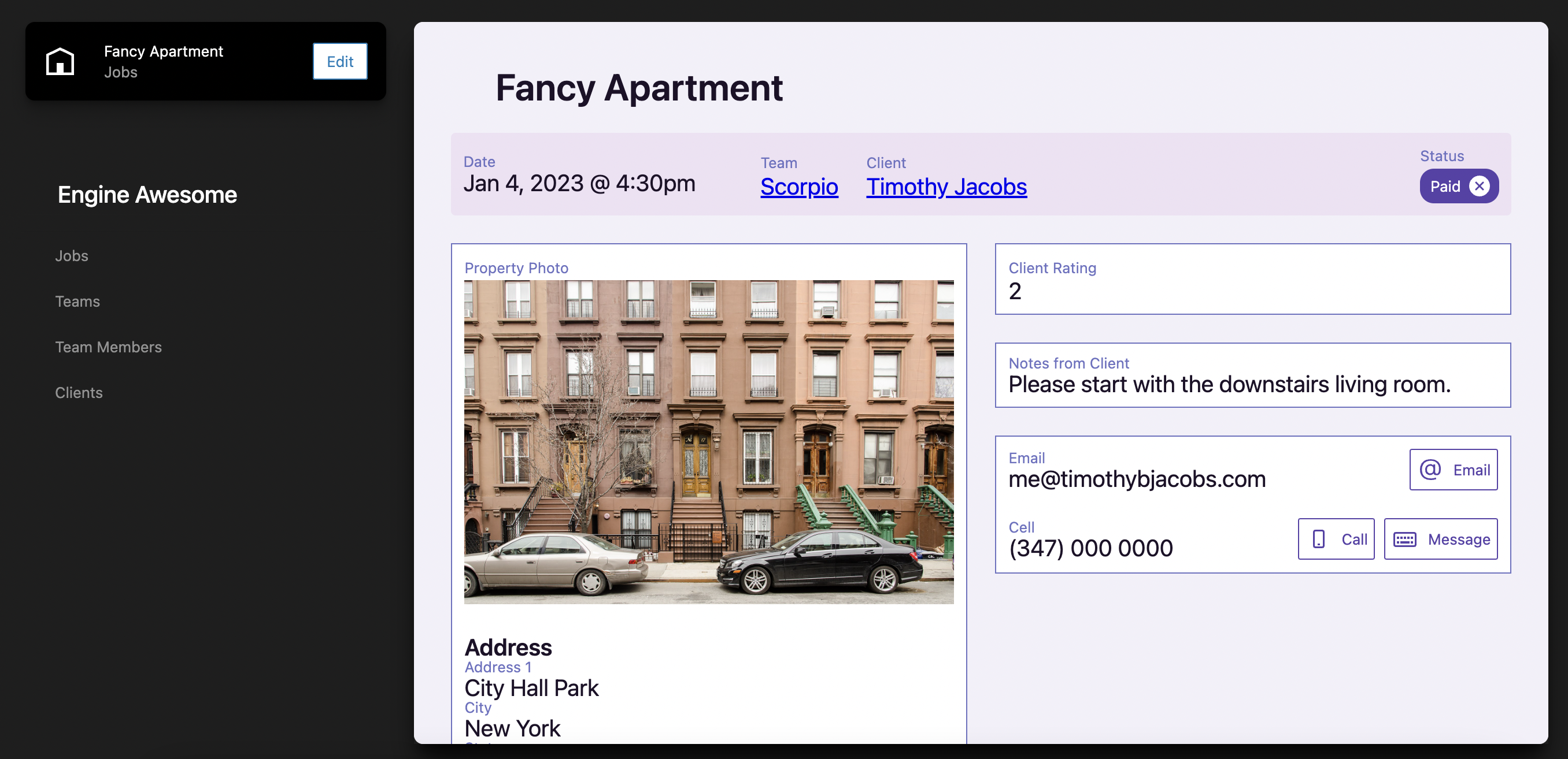 - Shelly’s Organic Home Cleaning has four teams of three cleaners each. Each morning teams will log into Engine Awesome to see their upcoming jobs. Once at the location, they place the job in “cleaning” status and being. Upon completion, the job is placed in a “Done” status. Homeowners are automatically emailed when the job has started and when it ends. Once the cleaning service moves to credit cards, we will email a Stripe payment link upon completion.