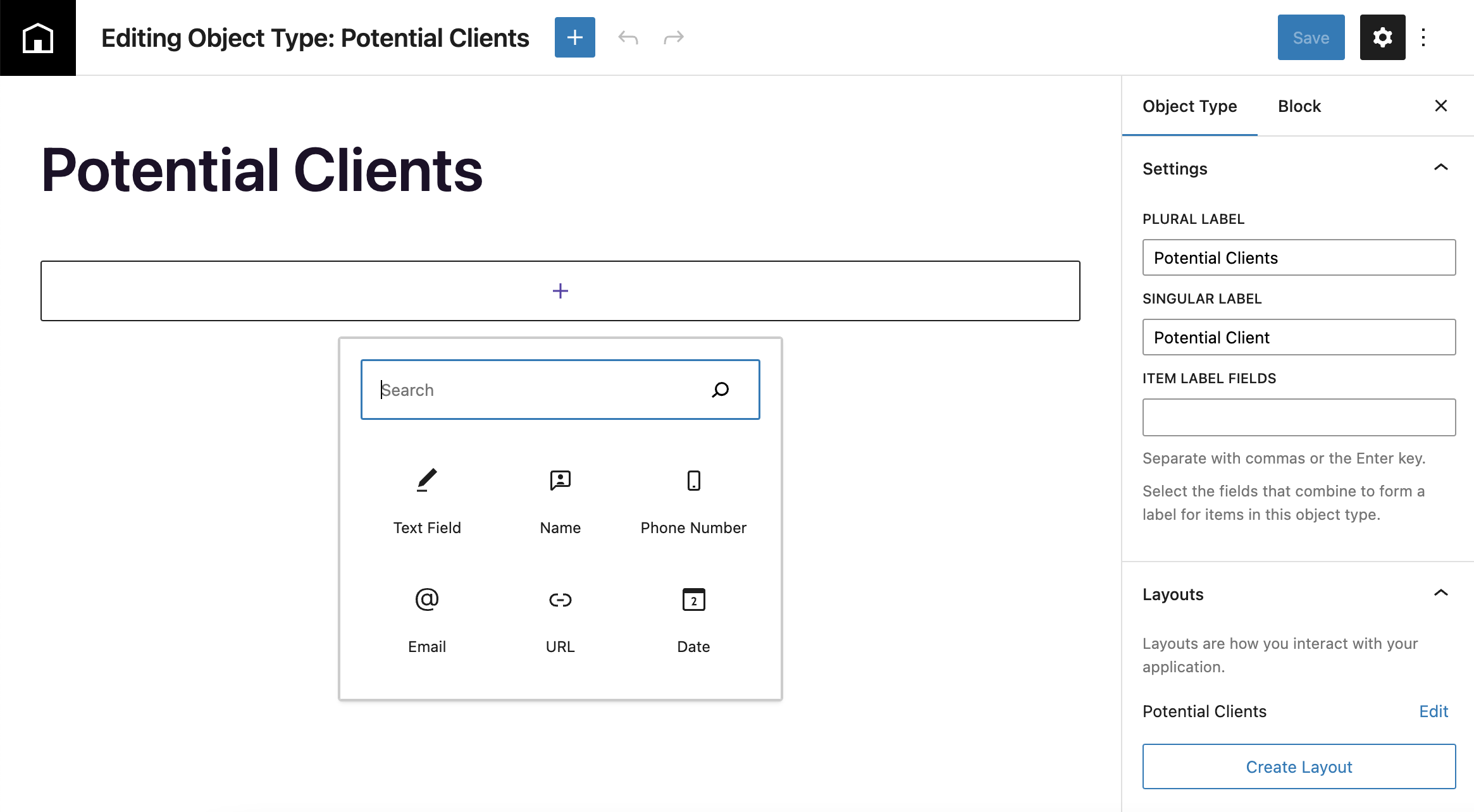 Editing an object type looks very similar to the WordPress block editor. App creators can easily add fields that will be part of that object and drag and drop to rearrange them. Users can create relationships between object types for smart ways of organizing the app’s data. Engine Awesome is also set up to connect apps to more than 5,000 services via Zapier integration.