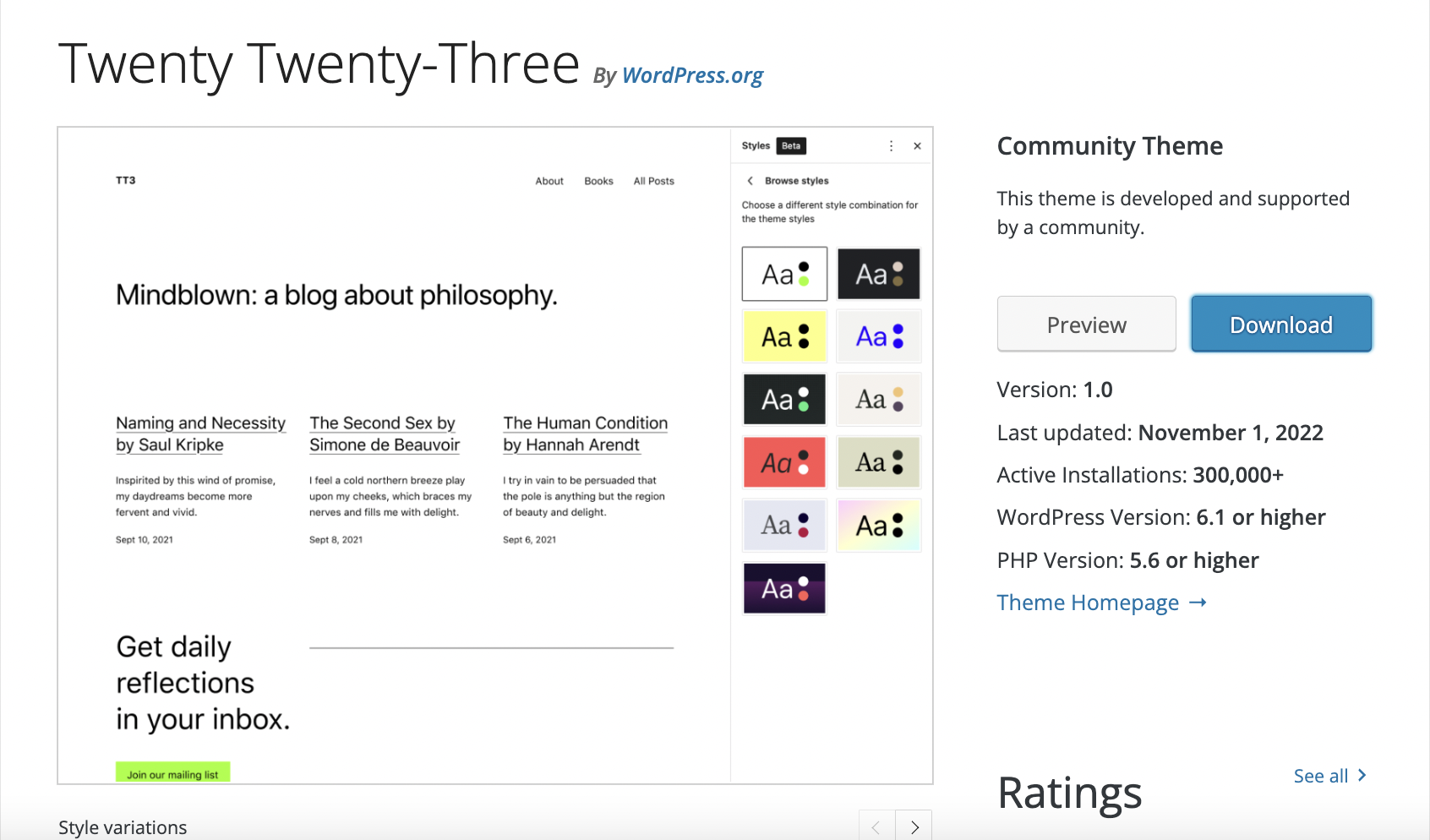The categories do not yet seem to be as widely applied to themes, but one example is all the default themes fall under the “Community Theme” designation, indicating that they are developed and supported by a community as opposed to being a part of a commercial endeavor.