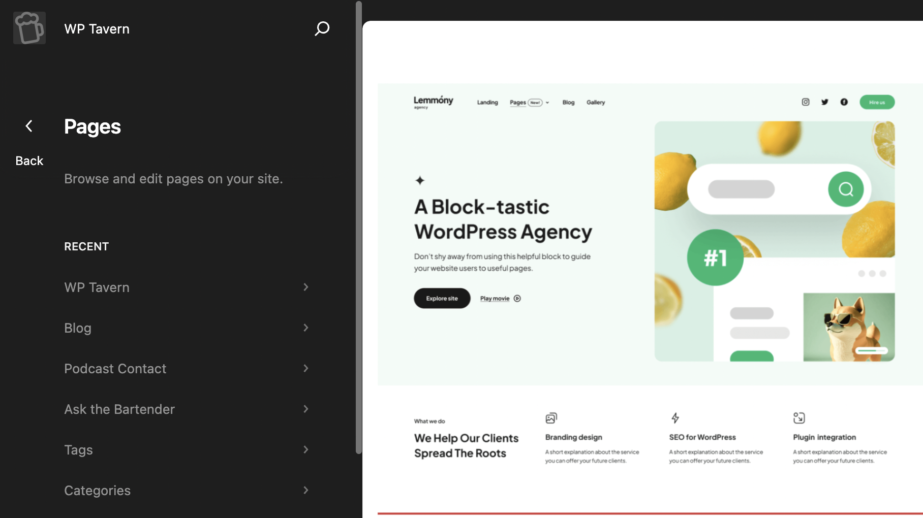 The interface also includes a little reminder about the nature of pages in WordPress: “Pages are static and are not listed by date. Pages do not use tags or categories.” It will be interesting to see how page editing in the Site Editor is received, whether it is too confusing for users to understand what they are editing, or whether the baseline expectation is that content can be edited anywhere.