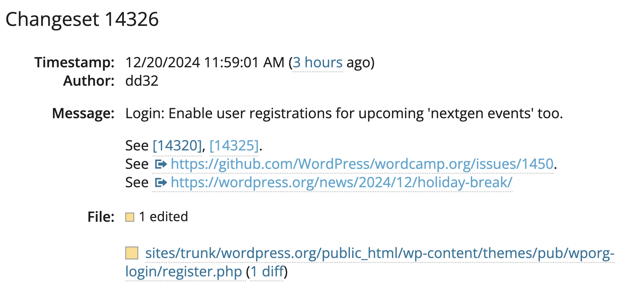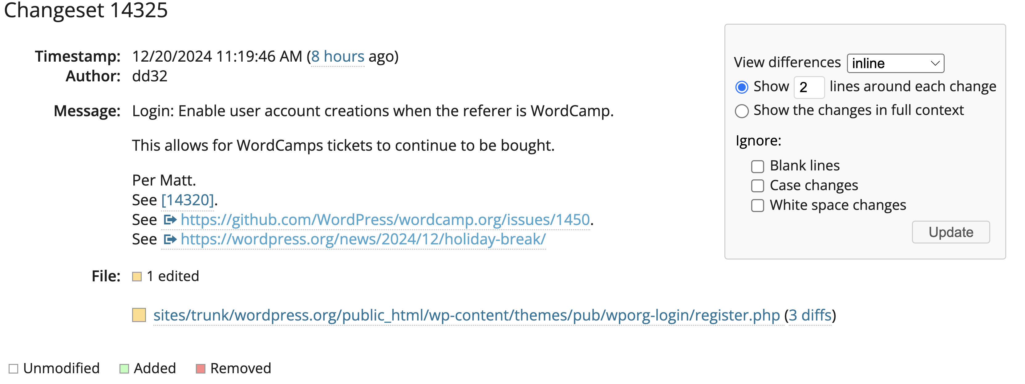 Joost de Valk of Emilia Capital raised the issue in WordPress GitHub and Dion Hulse reenabled the registration if the referrer is WordCamp. “Login: Enable user account creations when the referer is WordCamp. This allows for WordCamps tickets to continue to be bought. Per Matt.”, reads the Trac message.