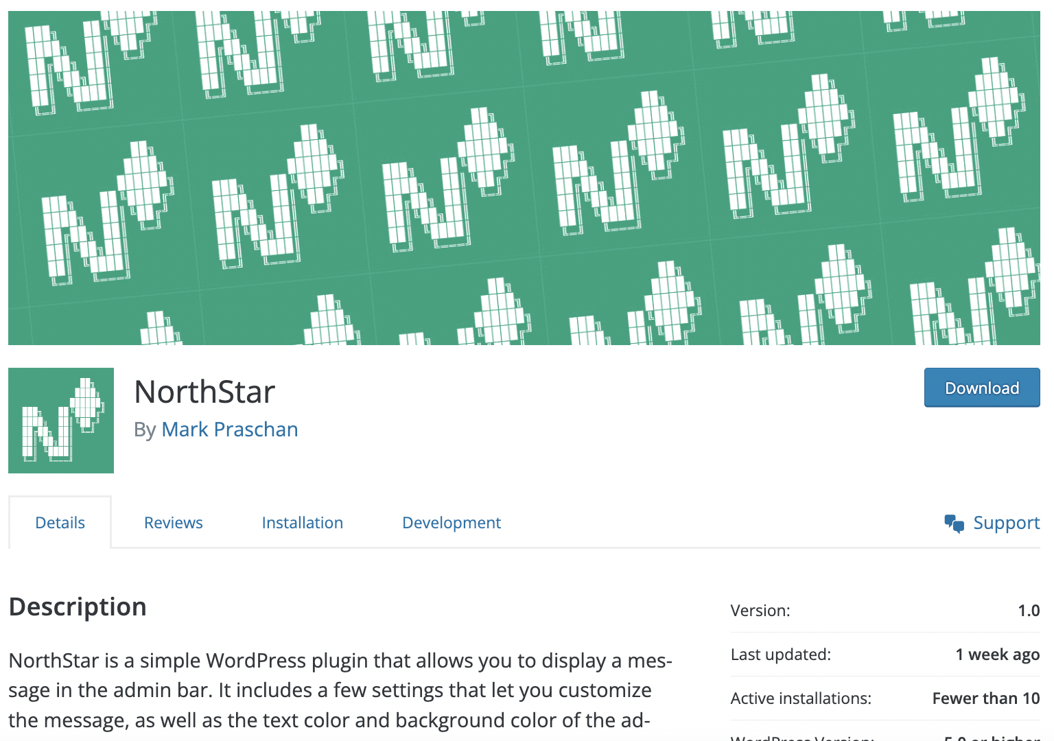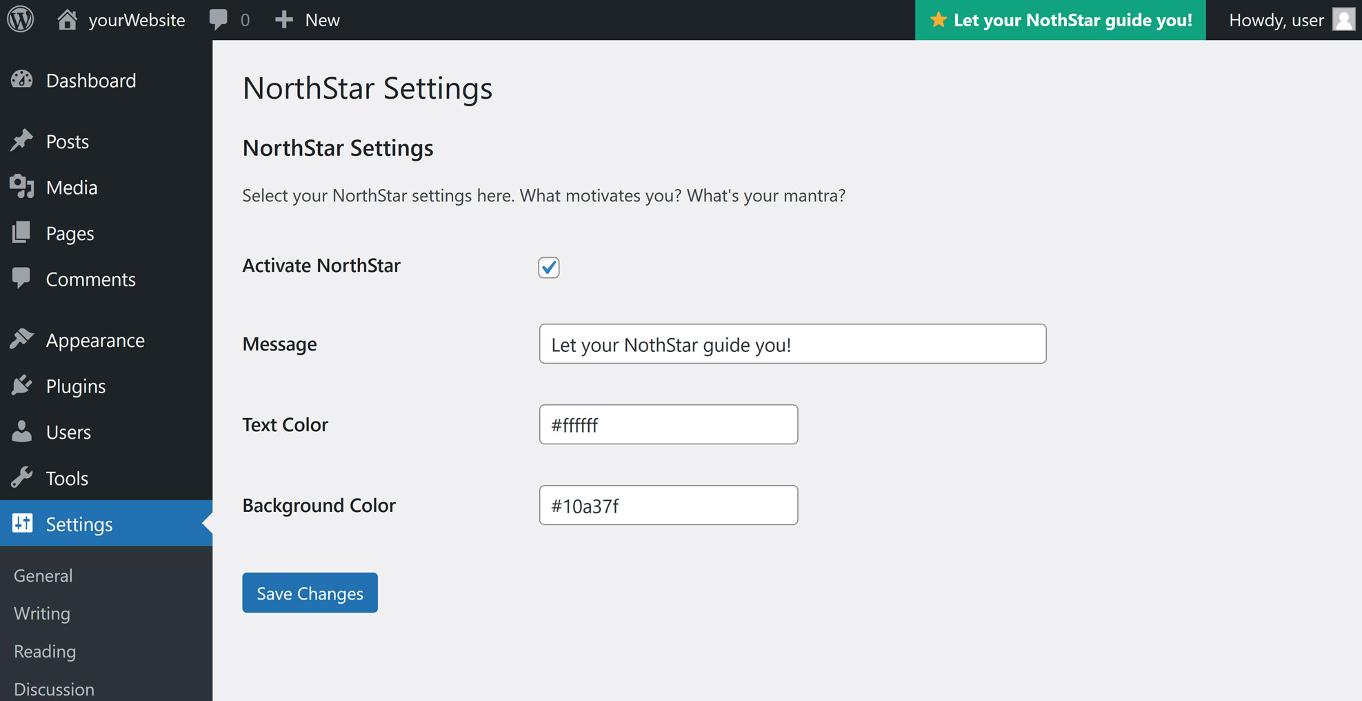 NorthStar allows users to display a message in the WordPress admin bar with settings to customize it along with the text and background colors.