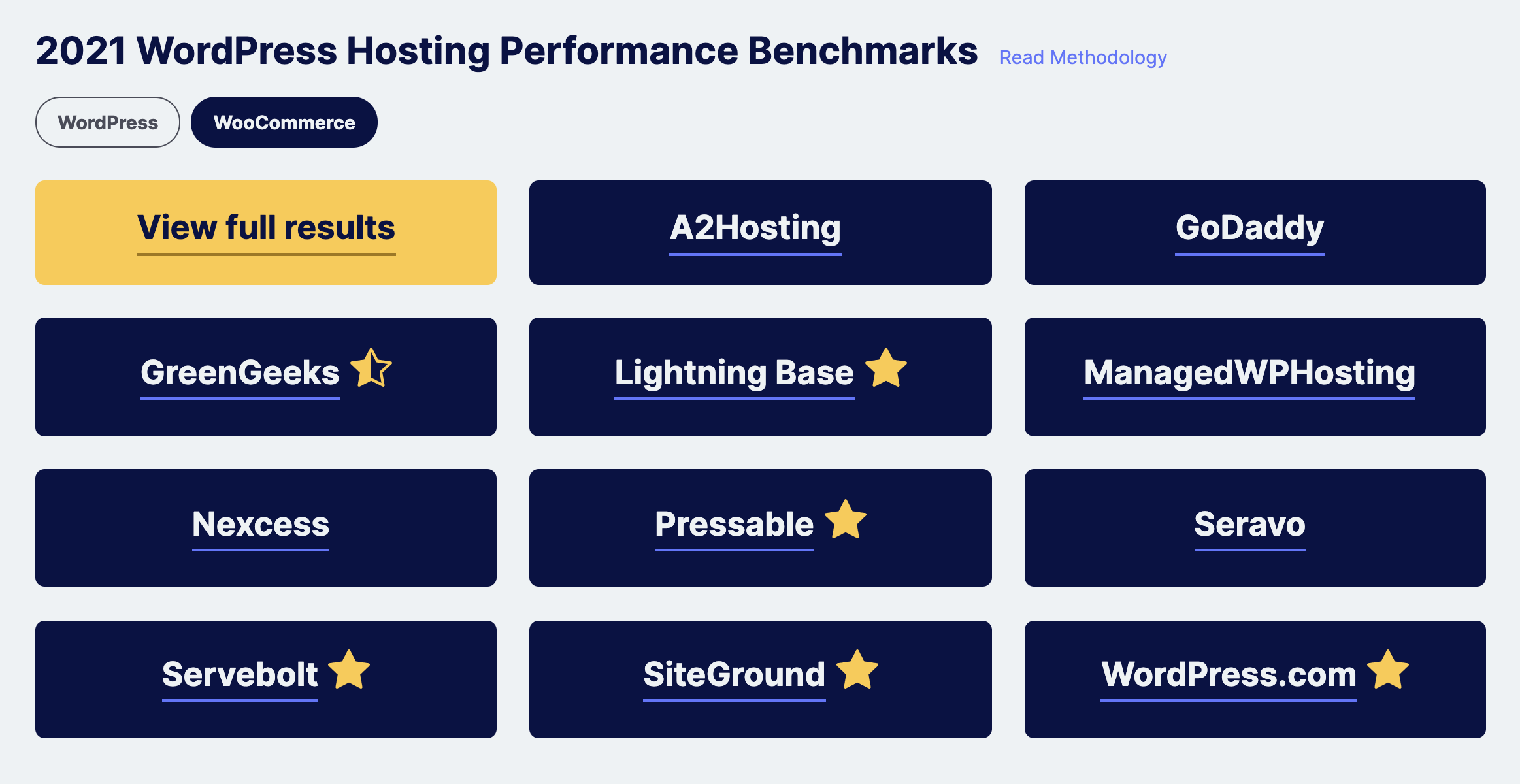 Results on the new site are much easier to understand at a glance with honorable mentions and top tier companies denoted by a half star and full star. Visitors can click through to get more specific information about each host’s performance on the tests.