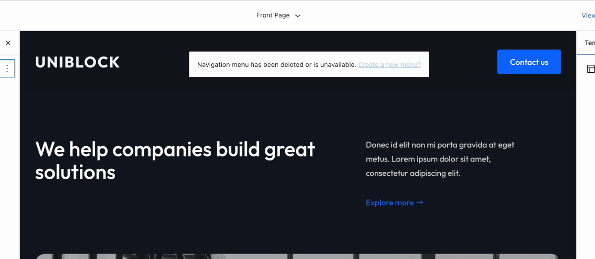 Users can delve even further into customizing the templates with the site editor, as UniBlock is packaged with nearly two dozen templates and template parts. Here they can also edit the menu and adjust global styles.