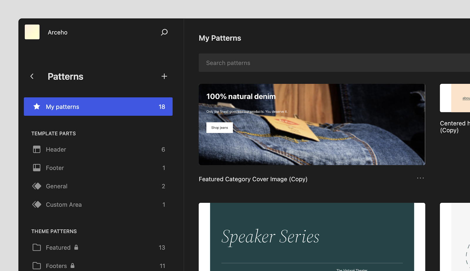 Pattern management was a major focus of the 6.3 release. Users can now arrange blocks to create their own patterns and save them to a library where they can be searched and edited.
