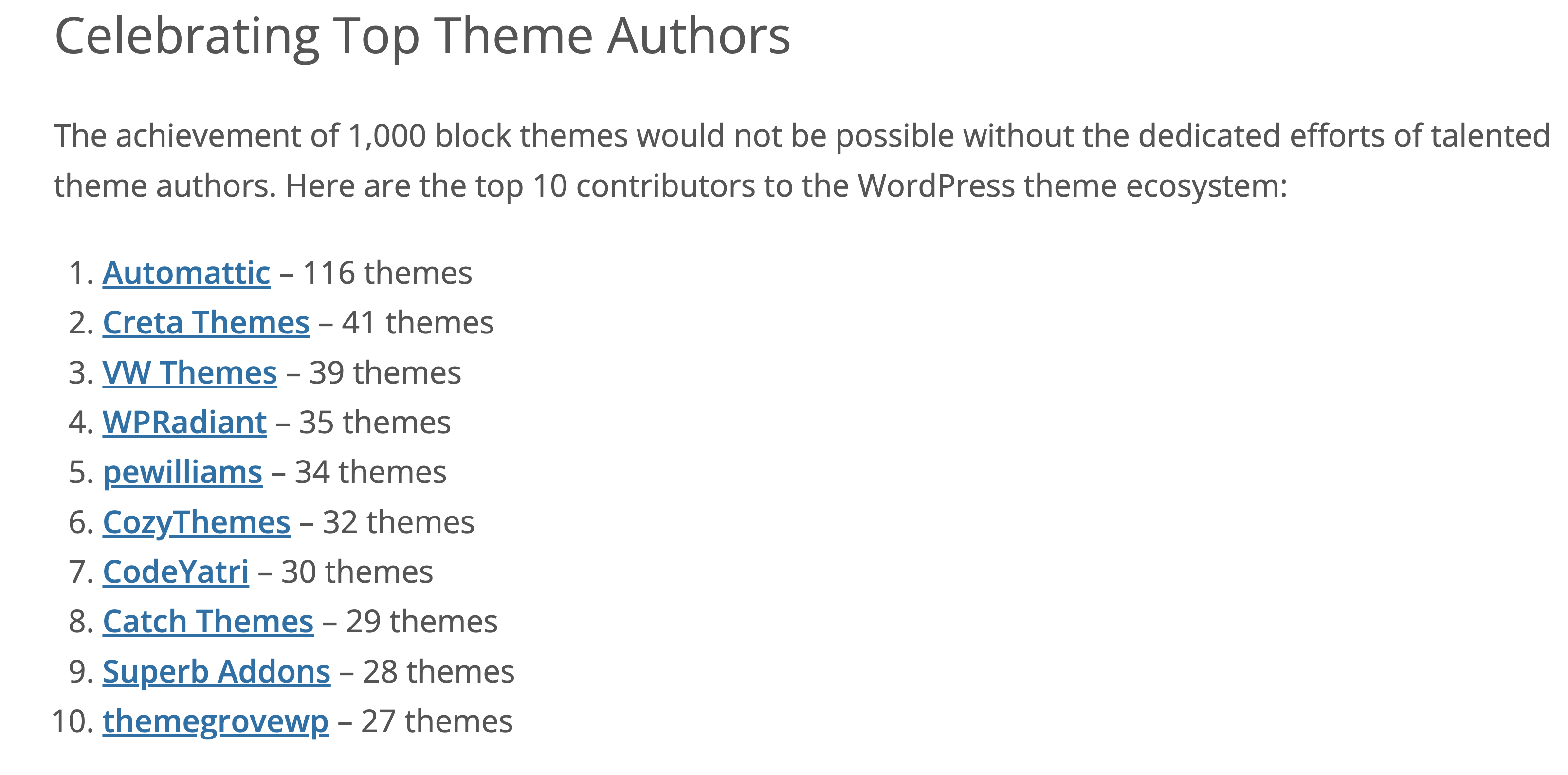 The WordPress Themes Repository has hit an exciting milestone of 1,000 block themes. As of today, the repository has over 12,000 free themes.