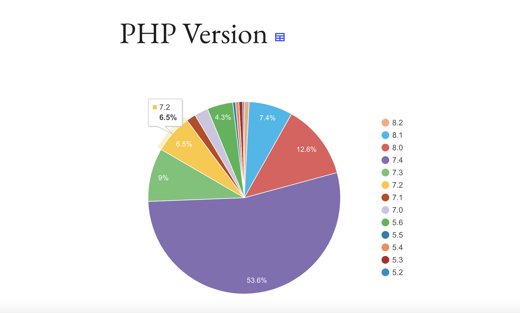 Another highlight of this release is that Yoast SEO has dropped compatibility with PHP 5.6, 7.0 and 7.1. The plugin now requires PHP 7.2.5 or higher (along with WP 6.0). While this may seem extreme at first glance, approximately 89.9% of WordPress sites are running on PHP 7.2+. WordPress doesn’t cross-reference these stats with WP version numbers, but it’s possible sites running on much older versions of WordPress are also on unsupported versions of PHP.