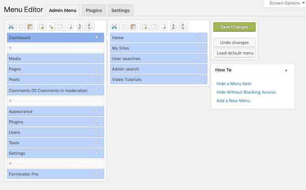 This is done using a straightforward interface – you can reorder your menu items (by dragging and dropping), show/hide specific items, change user permissions, and more.
