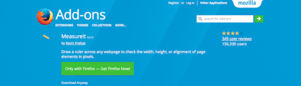 MeasureIt is an extension available for Firefox which allows you to check the width, height, or alignment of page elements in pixels. Chrome users, on the other hand, can get the same functionality from Dimensions which allows you to measure between the following elements: images, input-fields, buttons, videos, gifs, text, icons. You can measure everything you see in the browser.