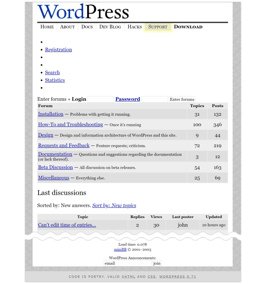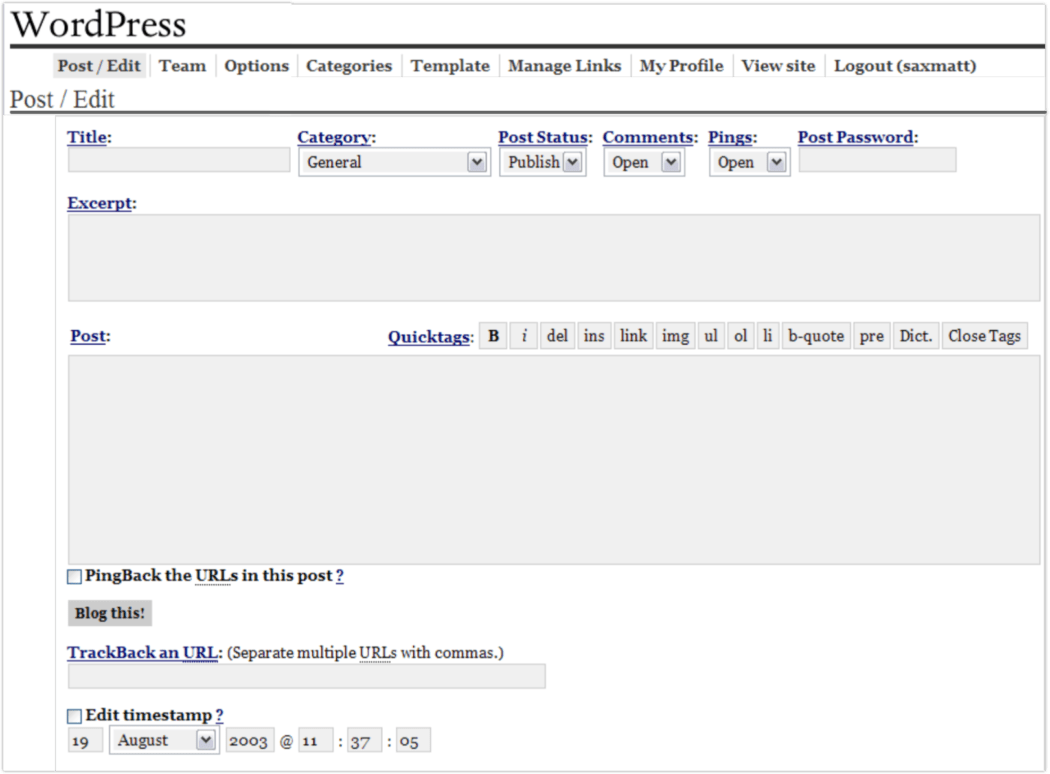 Its historical content nestled safely online, so you can see with your own eyes the very first stirrings of what would later become WordPress.