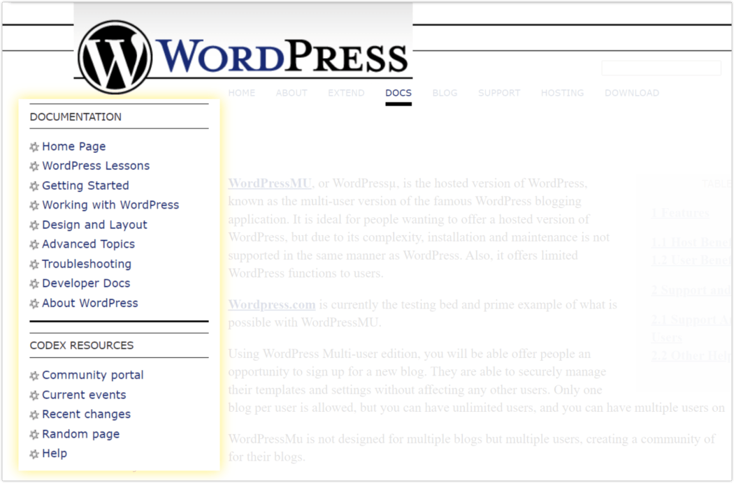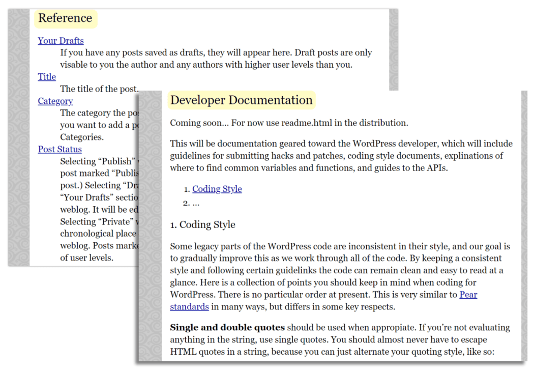 There was a new feature under the main Docs page this year: WordPress Code Reference.
