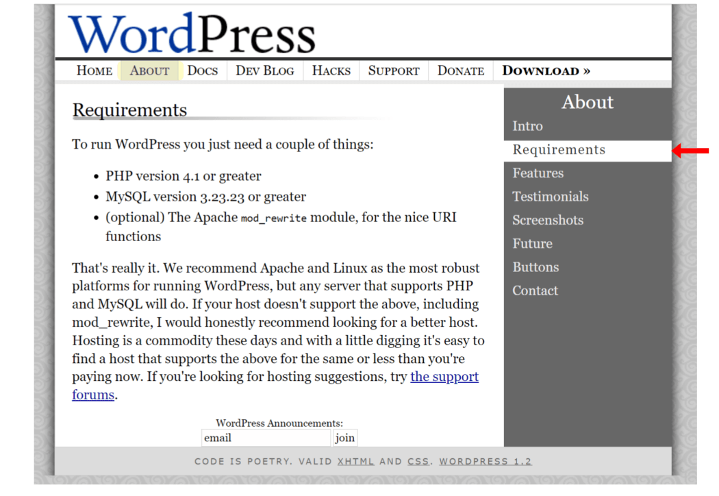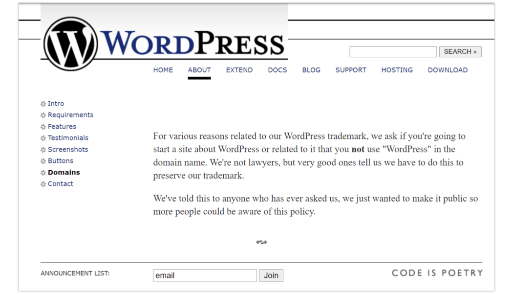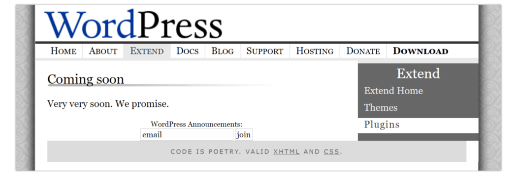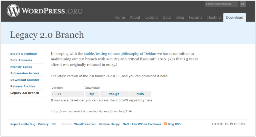 Once thing that has never changed… the Code is Poetry tagline. From it’s first day going live to the moment I am typing this, Mullenweg’s mantra has remained in the footer of WordPress.