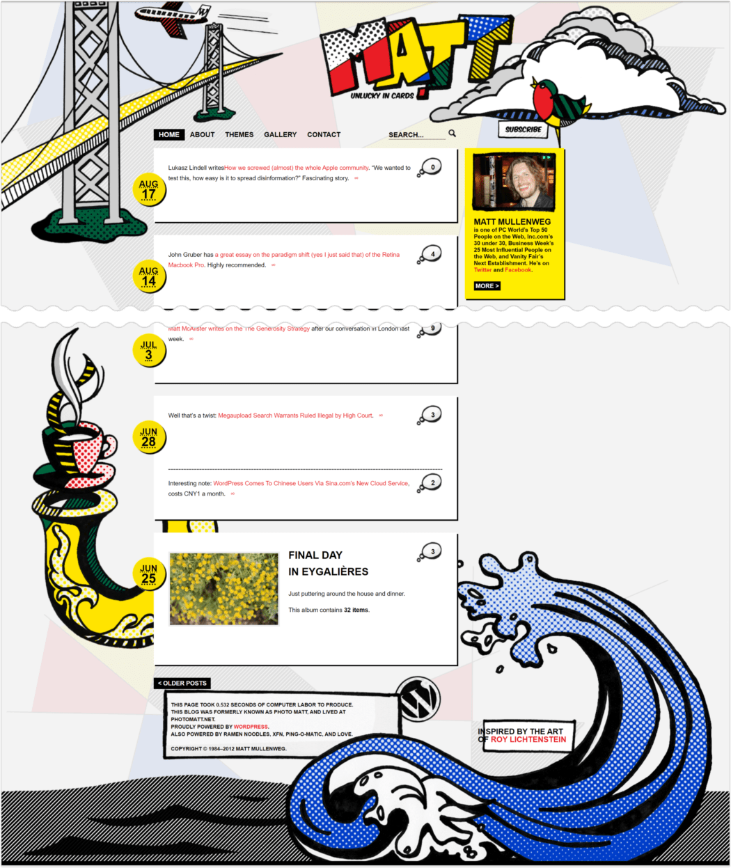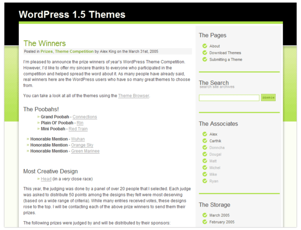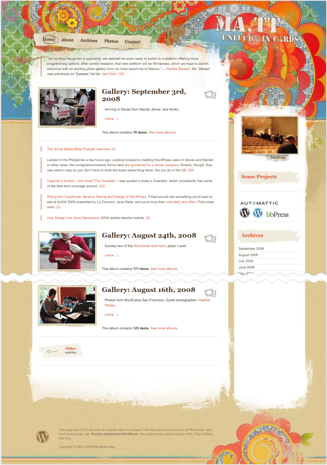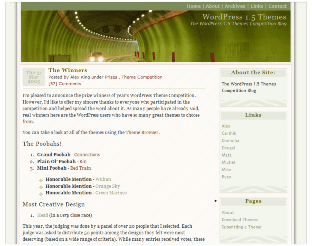 Over the course of WordPress’s life, the wildly varying images, layouts, colors, fonts and formats have provided a visually rich journey that could justifiably be labeled an epic era in online history.