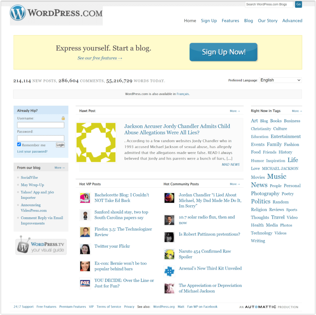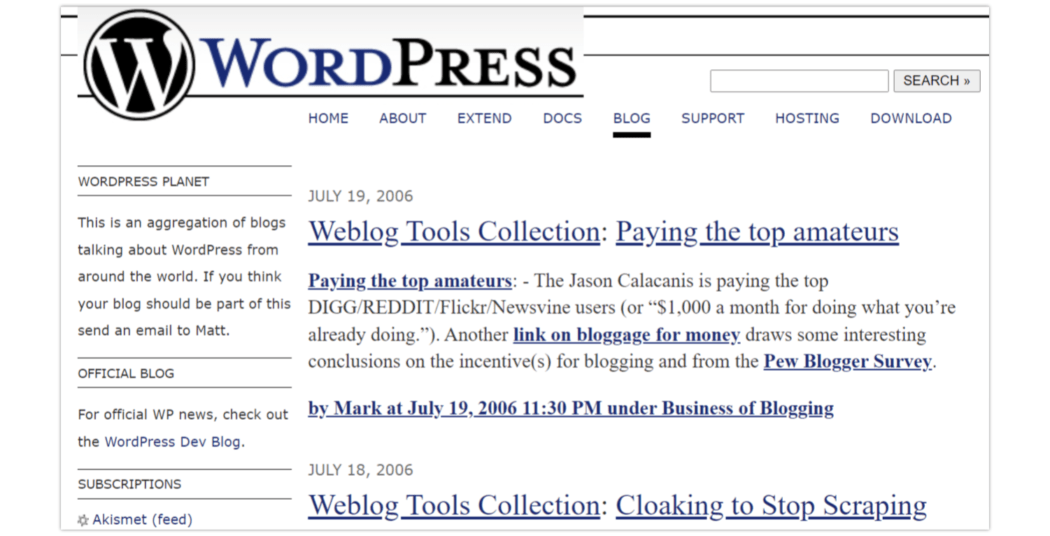 With the anniversary approaching, and WordPress undergoing another makeover this past week, we thought we’d take a look back at these well-nigh two decades.