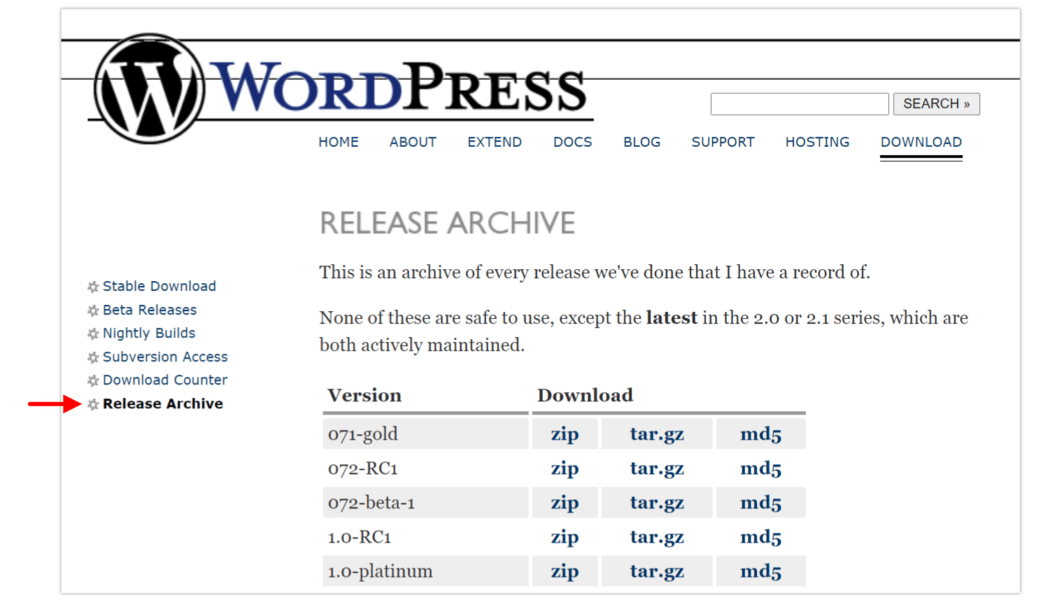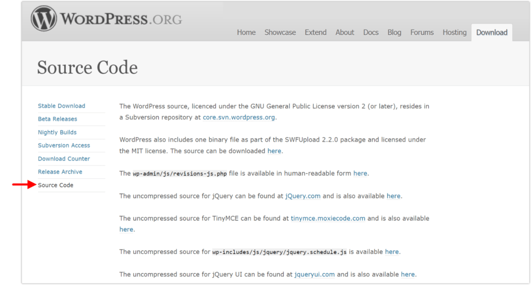 At this stage, the downloadable WordPress files were stored externally on SourceForge.