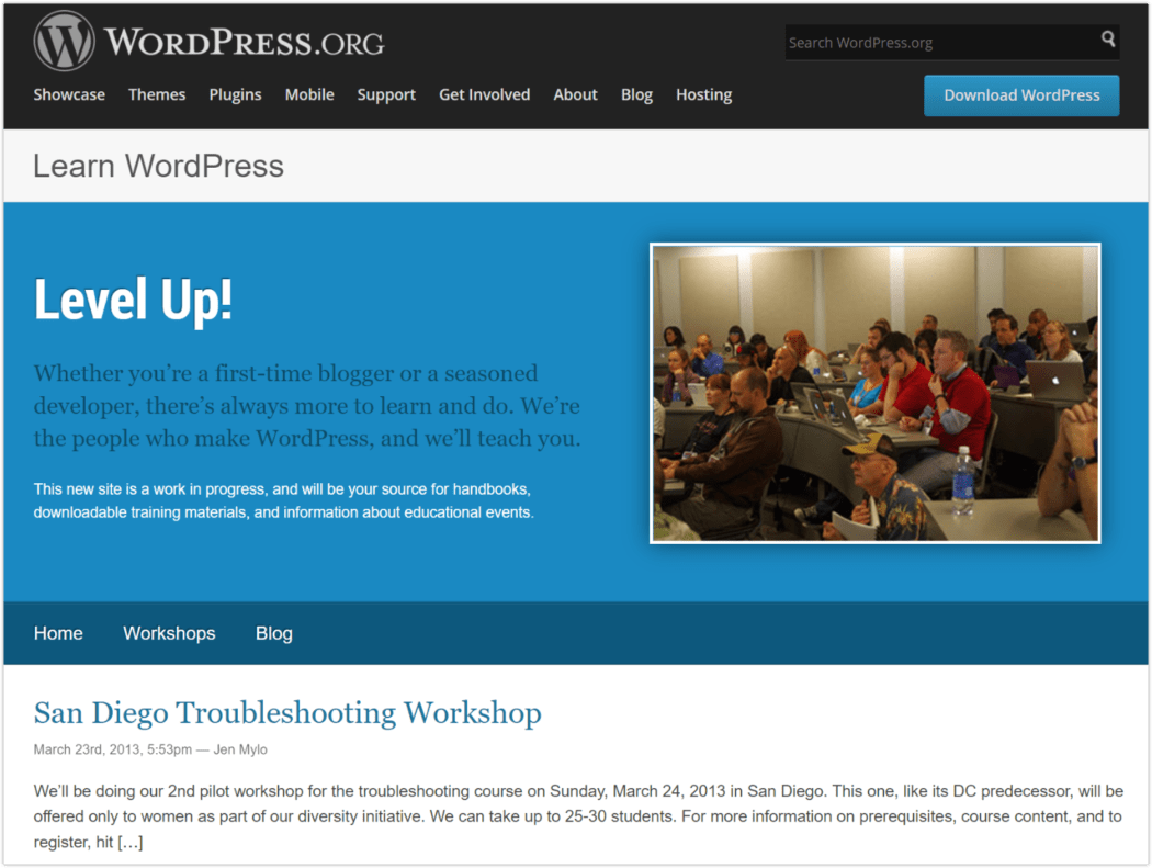 Starting this year and through to the present, the primary landing page on WordPress.org has remained the same.