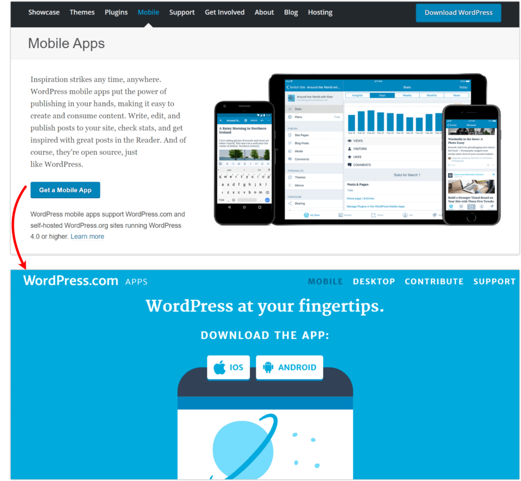 Now, you go directly through your OS provider and get WordPress mobile through Apple’s App Store, or on Android’s Google Play.