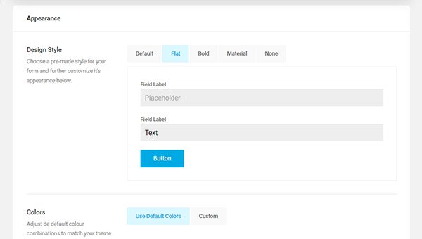 You can choose your preferred style here. I like the look of the Flat style more than the Default one, however this choice is up to you. It also offers you a way to add Custom CSS for your form.