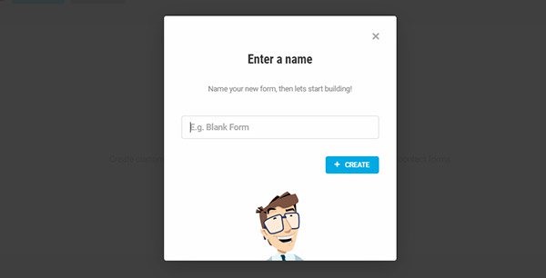 A popup will appear where you need to enter your new form’s name. Keep the form name unique and memorable so that you can recall it easily. Click the blue Create button after entering your form name.
