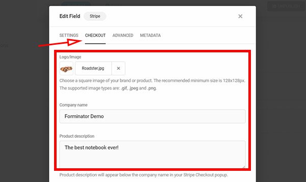 Don’t forget to set your brand logo, company name and product description under the Checkout tab. It’s great to have a self-branded payment gateway popup.