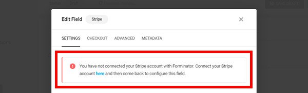 Note: You need an activated Stripe account to configure the Stripe field. Otherwise, it won’t let you edit it. If you need help to set it up, use Forminator’s documentation as a cheatsheet.