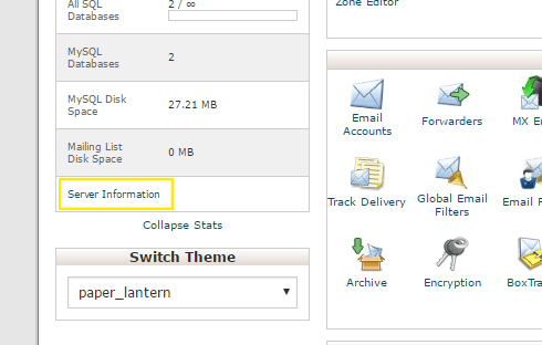 You can check to see what version you’re currently using for your site in cPanel by logging in and clicking the Server Information link on the left-hand side of the page, under the list of stats.