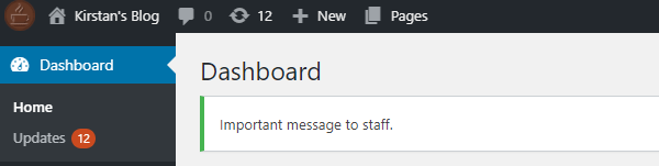 You’re greeted with the same input box as with the Admin Footer, however this message will display at the top of each page, so is a much better place to share company updates and reminders.