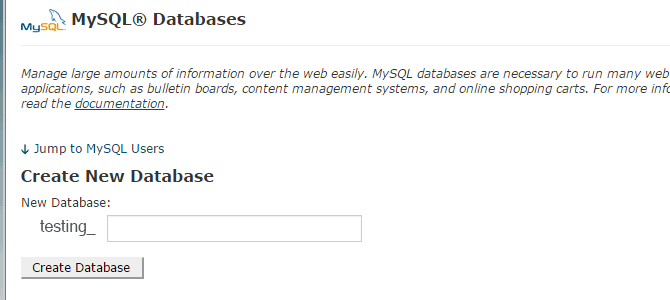 Once that’s done, delete your database as described earlier and enter the same database name as the one you just deleted under the Create New Database heading. Click the Create Database button.
