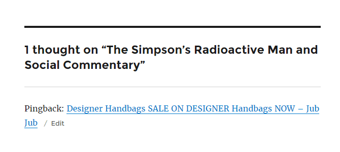 This kind of spam shows up in the comments on your site. Typical spam comments are often riddled with links or contains a single link to a site filled with malware and viruses or even sales pages for pharmaceutical drugs, knock-off designer clothes, and accessories or other goods.