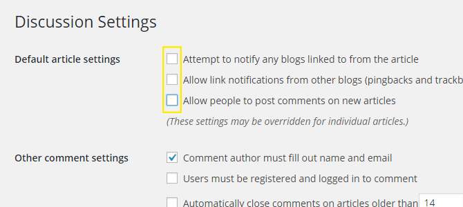 Disabling Comments, Trackbacks and Pingbacks